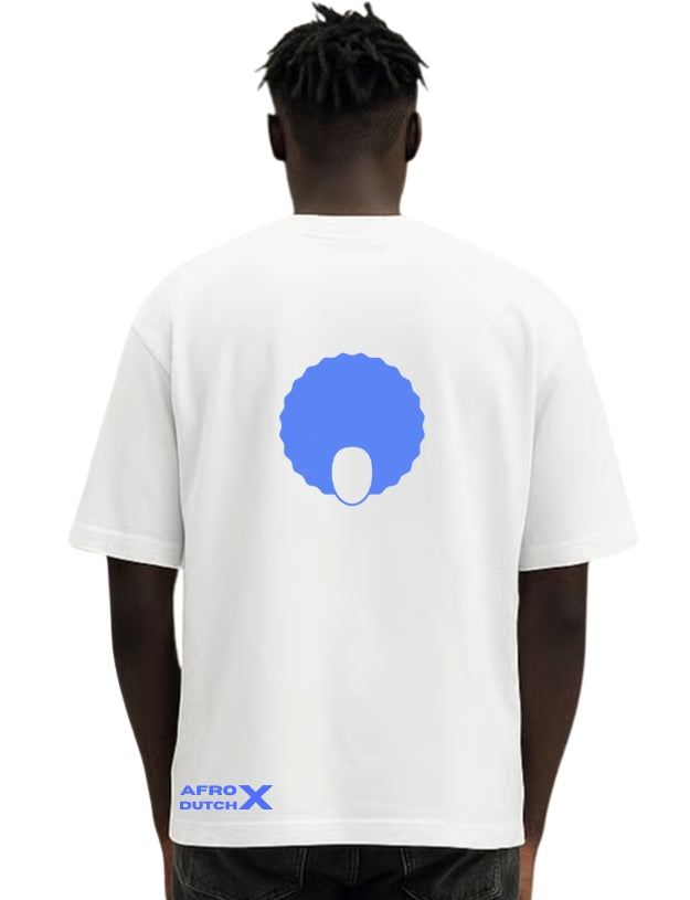 Wit Oversized T-shirt met Felblauwe Flex Logo's | AFRO X DUTCH